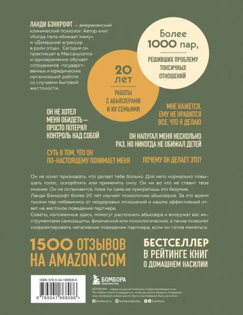 Он не хочет признавать, что делает тебе больно. Для него нормально повышать голос, оскорблять или применять силу. Он ни во что не ставит твое мнение. Он не остановится, пока ты сама не прекратишь это безумие. Советы, изложенные здесь, помогут распознать абьюзера и вооружат вас инструментами самозащиты, физической или психологической, от агрессивных и контролирующих мужчин. А также позволят скорректировать негативное поведение партнера, если он готов меняться.