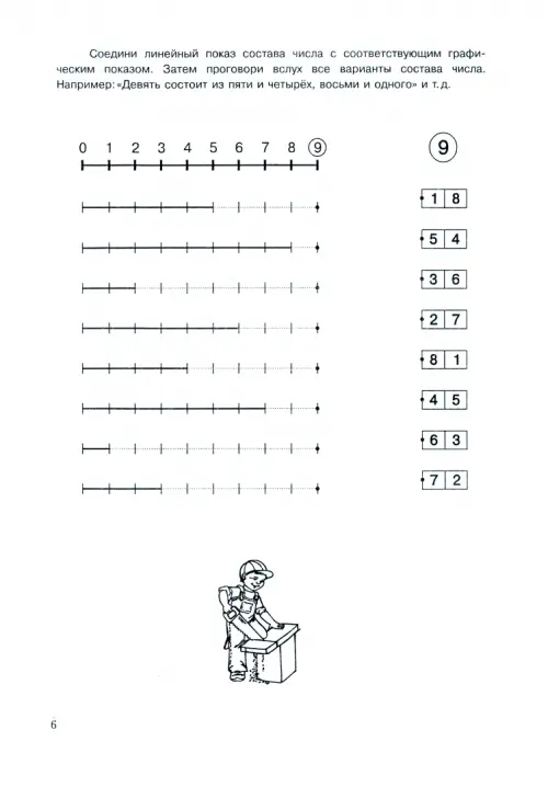 Чтобы дошкольник запомнил все варианты состава числа, он должен их многократно увидеть и повторить. Мы сделали этот повтор разнообразным и увлекательным! В нашей тетради состав каждого числа показан в различных вариантах (количественно, линейно, графически) и игровых упражнениях. Ребенок не почувствует скуки и однообразия, а значит, не потеряет интерес к математике и желания двигаться дальше!