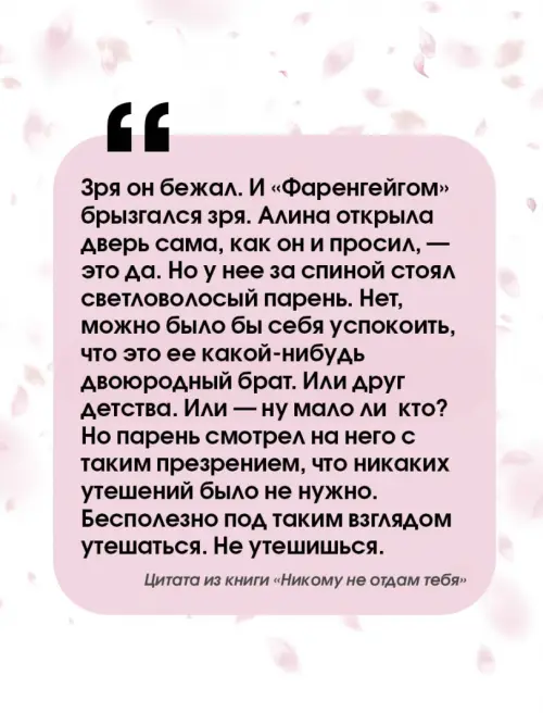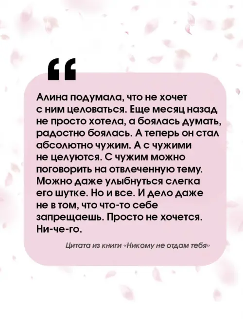 Если вы обнаружили ошибку в описании товара «Никому не отдам тебя» (авторы: Каретникова Екатерина Алексеевна), то выделите её мышкой и нажмите Ctrl+Enter. Спасибо, что помогаете нам стать лучше!