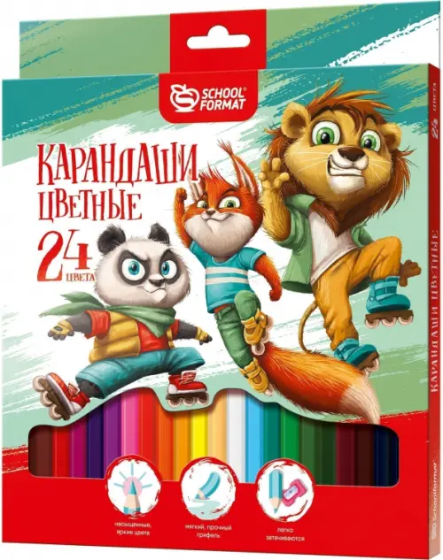 Карандаши цветные Веселые зверята, 24 цвета