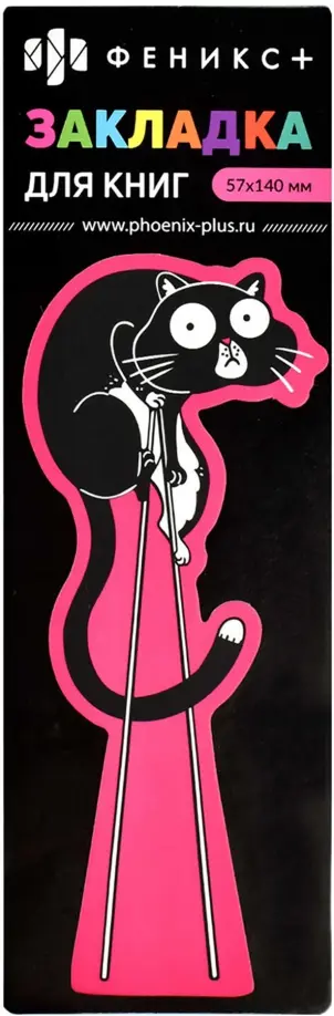 Закладка для книг фигурная (1 шт. в наборе, размер 57х140 мм, материал: мелованный картон 320 г/м?; цвет: белый, розовый, чёрный, декор: матовая ламинация, полноцветный дизайн, фигурная вырубка, индивидуальная упаковка: подложка из мелованной бумаги + ПЭТ-пакет с европодвесом)