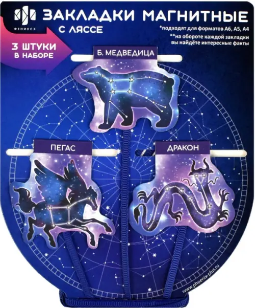 Набор закладок-ляссе магнитных для книг Созвездия, 3 шт