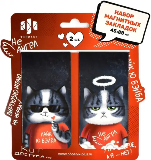 Набор закладок магнитных для книг (2 шт. в наборе, размер 45х89 мм, материал: мелованная бумага, ферроагломерированный полимер; цвет: белый, красный, серый, декор: полноцветный дизайн, особенности: глянцевая ламинация, индивидуальная упаковка: подложка с европодвесом из мелованного картона + ПЭТ-пакет)