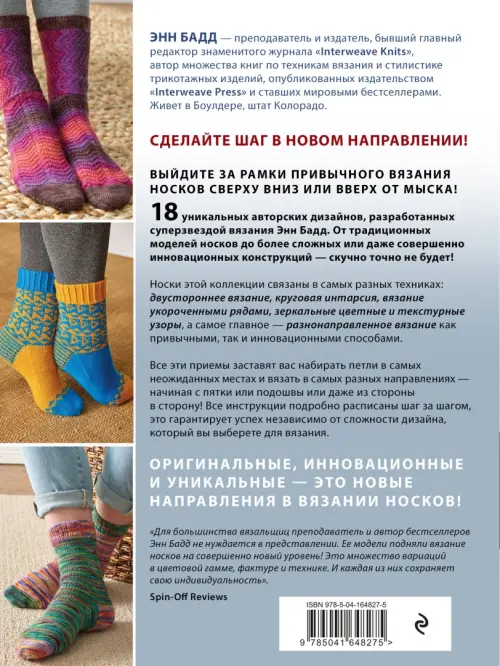 Хотите выйти за рамки привычного вязания и создать что-то по-настоящему уникальное? Тогда коллекция носков от Энн Бадд - это именно то, что вам нужно! Суперзвезда вязания, главный редактор знаменитого журнала Interweave Knits представляет не только 18 уникальных авторских дизайнов, которые позволят вам раскрыть свой творческий потенциал и создать настоящие шедевры, но и новый взгляд на носки в частности и на вязание в целом! От традиционных моделей до более сложных и инновационных конструкций - в книге вы найдете все, что нужно для того, чтобы воплотить свои самые смелые идеи в жизнь.