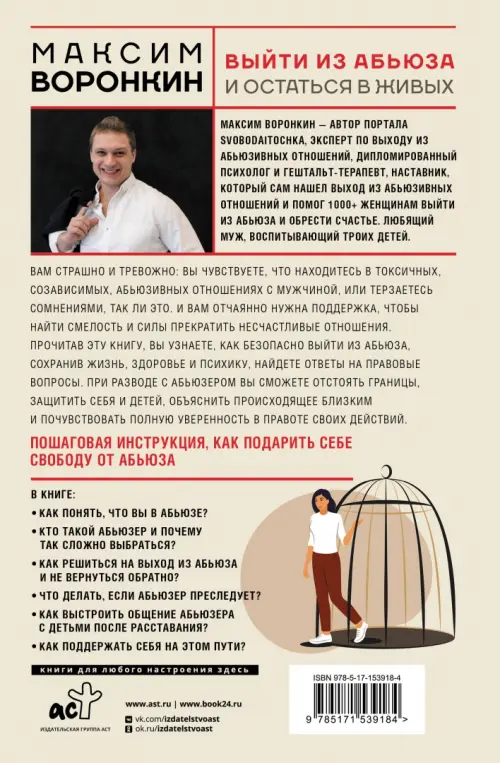 Прочитав книгу «Выйти из абьюза и остаться в живых», вы узнаете, как безопасно выйти из абьюза, сохранив жизнь, здоровье и психику, найдете ответы на правовые вопросы. При разводе с абьюзером вы сможете отстоять границы, защитить себя и детей, объяснить происходящее близким и почувствовать полную уверенность в правоте своих действий.