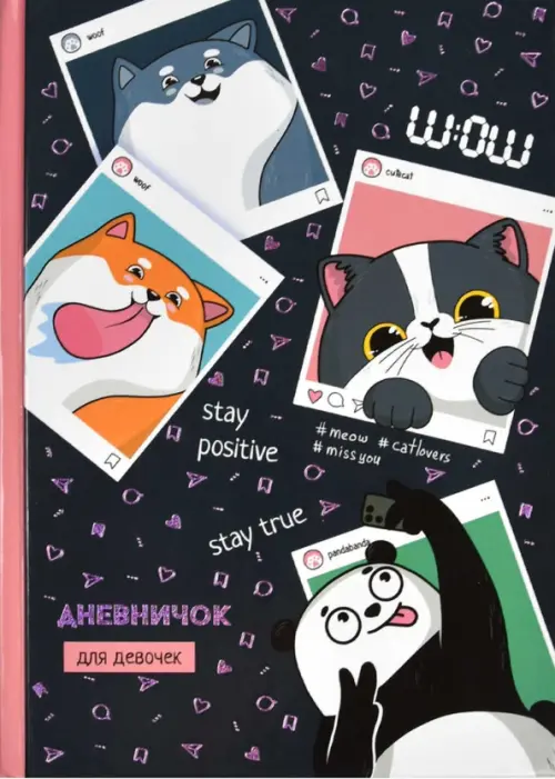 Дневничок для девочек, А5 (145х205 мм), 48 л., блок - полноцветная печать, твёрдый переплёт, глянцевая ламинация, тиснение фольгой/