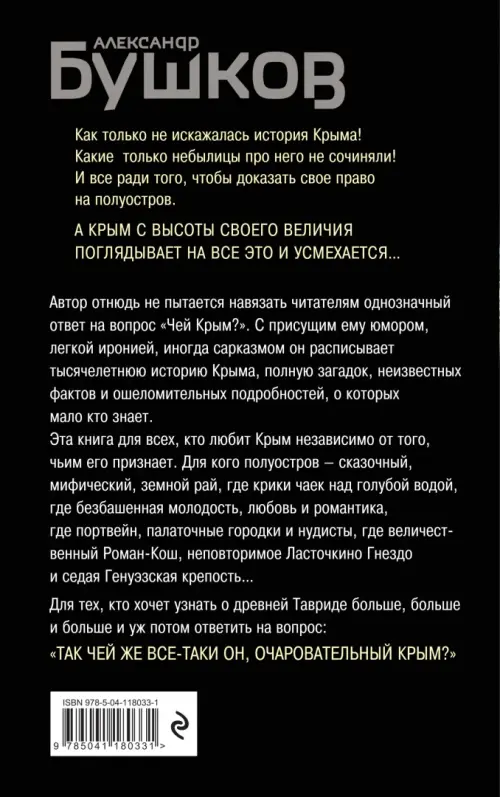 Если вы обнаружили ошибку в описании товара «Крым и крымчане. Тысячелетняя история раздора» (авторы: Бушков Александр Александрович), то выделите её мышкой и нажмите Ctrl+Enter. Спасибо, что помогаете нам стать лучше!