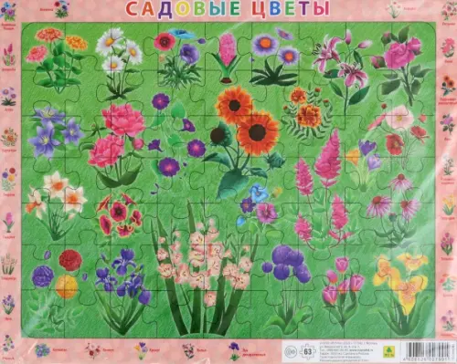 Цветы садовые. Детский пазл на подложке (36х28см, 63 эл.)
