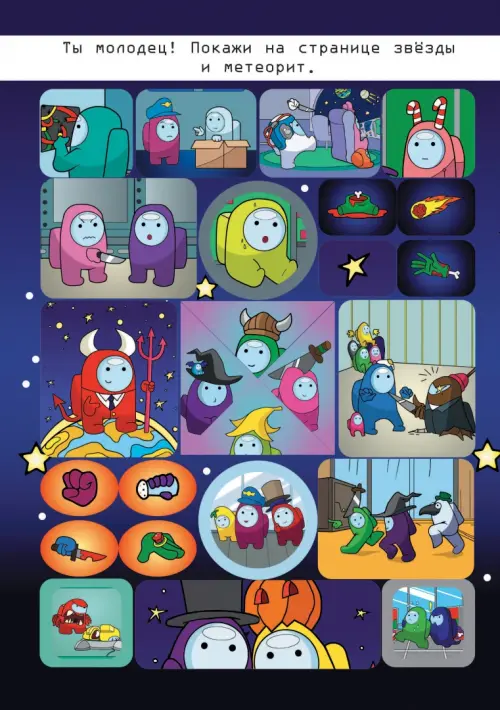Если вы обнаружили ошибку в описании товара «Большой альбом наклеек в стиле Among Us. 200 наклеек», то выделите её мышкой и нажмите Ctrl+Enter. Спасибо, что помогаете нам стать лучше!