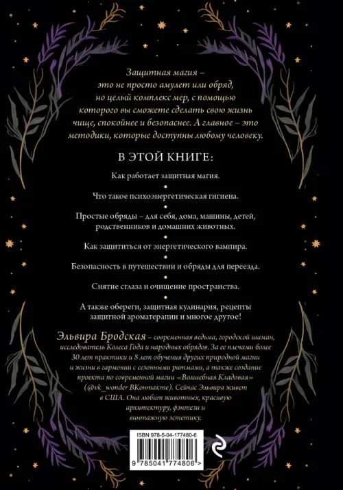 Эльвира Бродская — современная ведьма, городской шаман, исследователь Колеса Года и народных обрядов. За ее плечами — более 30 лет практики и 8 лет обучения других природной магии и жизни в соответствии с сезонными ритмами, а также создание проекта одной из крупнейших групп по современной магии «Волшебная Кладовая» (@vk_wonder ВКонтакте), которая существует более 10 лет. Сейчас Эльвира живет в США. Она любит животных, красивую архитектуру, фэнтези и винтажную эстетику.