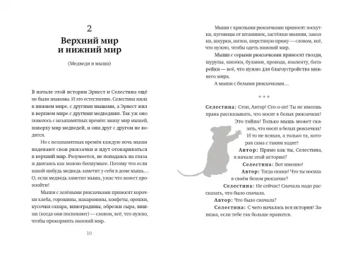 Альбомы Венсан вдохновили Пеннака на создание сценария анимационного фильма, который был номинирован на премию «Оскар» и получил премию «Сезар». Вслед за фильмом в 2012 году появилась и книга, которую вы держите в руках, — «История Эрнеста и Селестины». Это настоящий роман с пронзительной социальной повесткой: о вопиющем неравенстве в обществе и возможности найти родную душу вопреки запретам и предрассудкам.