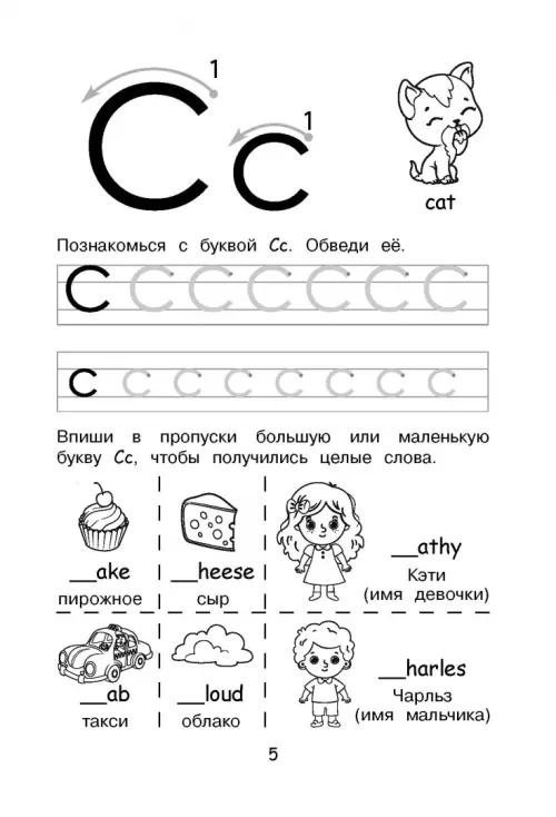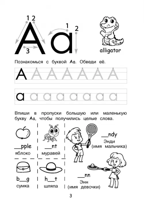 Для успехов в английском языке ребенку важно освоить английские буквы — научиться их узнавать, различать, писать. С этим пособием он легко решит эту задачу! Огромный плюс прописей — наличие в них и больших, и маленьких букв. Стрелочки-подсказки помогут и ребенку, и взрослому понять, как правильно написать букву, а новые знания можно будет тут же применить на практике. Современные дети не любят однообразных заданий, поэтому, помимо строчек для прописывания, в пособие включены упражнения на использование букв в словах. Это позволяет детям переключаться между заданиями, не теряя концентрации, и дает возможность легко выучить 111 новых слов.
