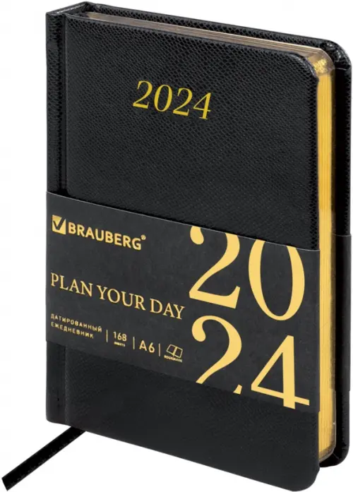 Внутренний блок включает 168 листов тонированной бумаги плотностью 70 г/м2. Каждая страничка имеет перфорированный угол. Благодаря малому формату А6 (100х150 мм) ежедневник удобно использовать как в офисе, так и на выездных деловых встречах. Твердая обложка классического черного цвета стилизована под кожу рептилии. Подходит для горячего тиснения. Срез ежедневника фольгирован золотой фольгой, что придает ему особый шарм. Дополнением является закладка-ляссе, с помощью которой при необходимости можно быстро открыть ежедневник на нужной странице. Помимо прочего, ежедневник снабжен обширным справочным материалом.