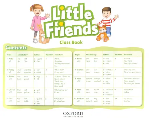 Курс Little Friends поможет сделать изучение английского языка простым и увлекательным для самых маленьких. Привлекательные персонажи и увлекательные занятия, соответствующие возрасту, создают благоприятную учебную среду, в которой учащиеся могут развивать словарный запас, изучать звуки английского языка с помощью фонетики, знакомиться с числами от 1 до 10 и учиться читать и писать.