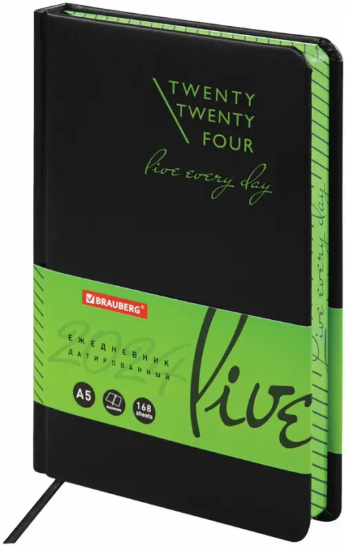 Ежедневник датированный 2024 Chameleon, А5, 168 листов, черный/зеленый