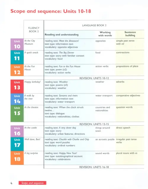 Книга для изучения языка дает учащимся возможность отработать базовые навыки, такие как чтение, понимание, построение предложений и речи, грамматика, аудирование, фонетика, правописание и письменная работа в классе. Страницы для повторения закрепляют изученный материал.