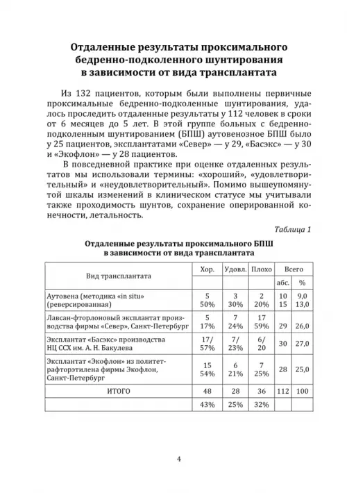 В учебном пособии прослежена зависимость проходимости шунта, сохранность конечности и летальность от вида трансплантата; охарактеризовать повторные операции при реокклюзиях бедренно-подколенного сегмента; определена роль поясничной симпатэктомии при бедренно-подколенном шунтировании.