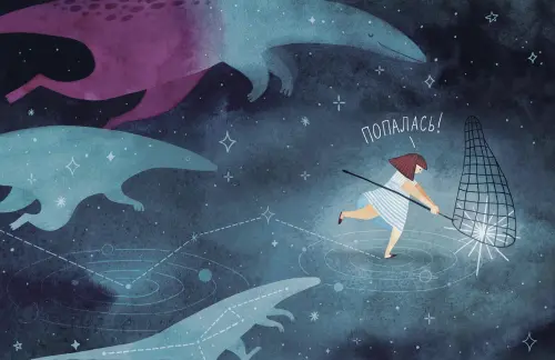 Замечательная книжка о том, что даже в самых заурядных обстоятельствах есть место для воображения и полета фантазии, что своим примером подтверждает главная героиня этой истории. Текста в книге минимум, ее основная составляющая - это иллюстрации, крупные и вместе с тем детальные. Стиль их эстетичен с аутентичной манерой. Бумага страниц очень качест...