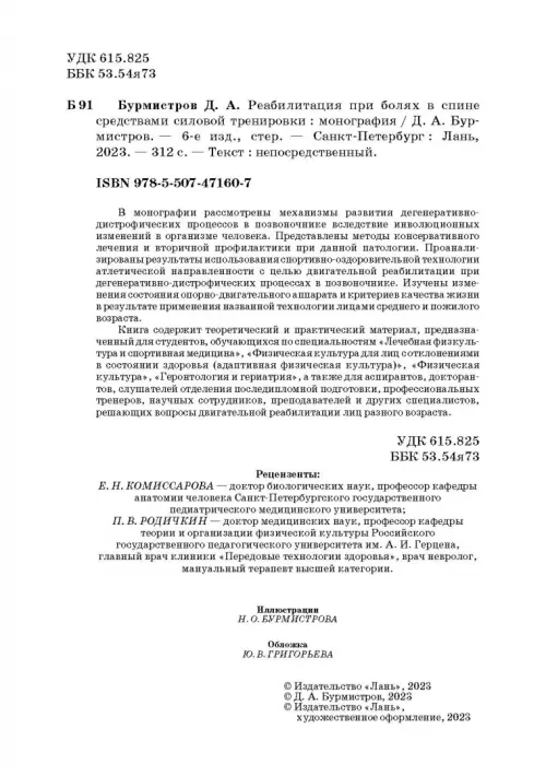 Если вы обнаружили ошибку в описании товара «Реабилитация при болях в спине средствами силовой тренировки» (авторы: Бурмистров Дмитрий Алексеевич), то выделите её мышкой и нажмите Ctrl+Enter. Спасибо, что помогаете нам стать лучше!