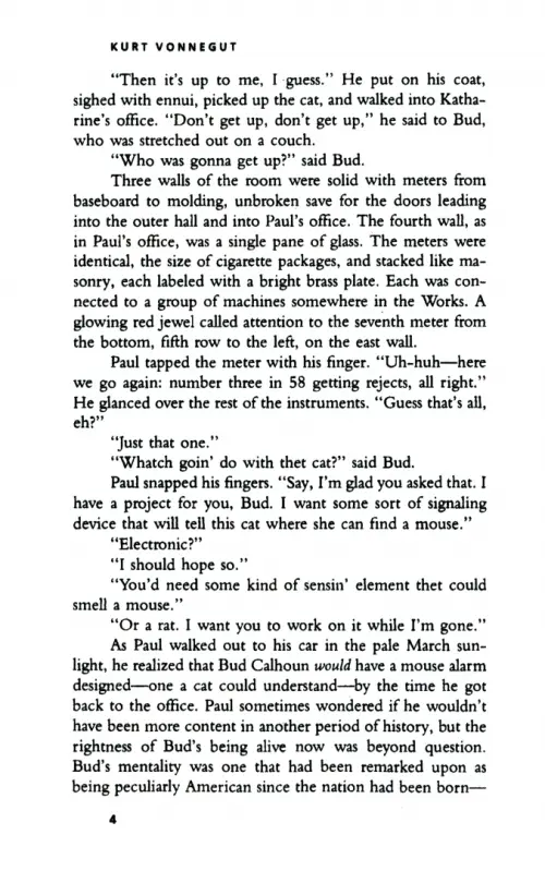 In Player Piano, the first of Vonnegut's wildly funny and deadly serious novels, automata have dramatically reduced the need for America's work force. Ten years after the introduction of these robot labourers, the only people still working are the engineers and their managers, who live in Ilium; everyone else lives in Homestead, an impoverished part of town characterised by purposelessness and mass produced houses.