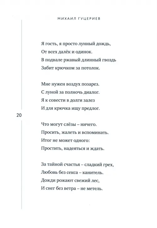 Сборник «Избранное» поэта Михаила Гуцериева великолепный подарок для всех любителей и ценителей поэзии. В каждом стихотворении своё послание, в каждой строке – цитата, в каждом слове – любовь. Буйство мыслей переплетается с буйством метафор, созидая терпкое повествование.