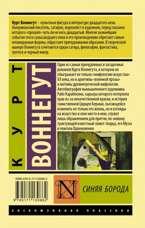 Если вы обнаружили ошибку в описании товара «Синяя борода» (авторы: Воннегут Курт), то выделите её мышкой и нажмите Ctrl+Enter. Спасибо, что помогаете нам стать лучше!