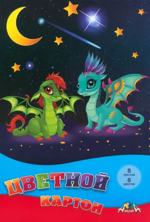 Картон цветной Дракончики, 8 цветов, 8 листов
