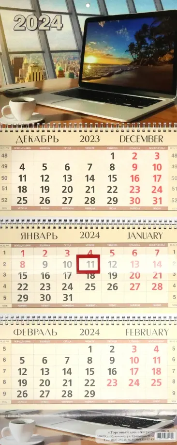 Календарь квартальный на 2024 год Офис