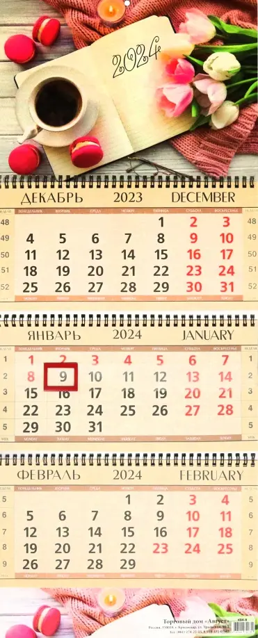 Календарь квартальный на 2024 год.