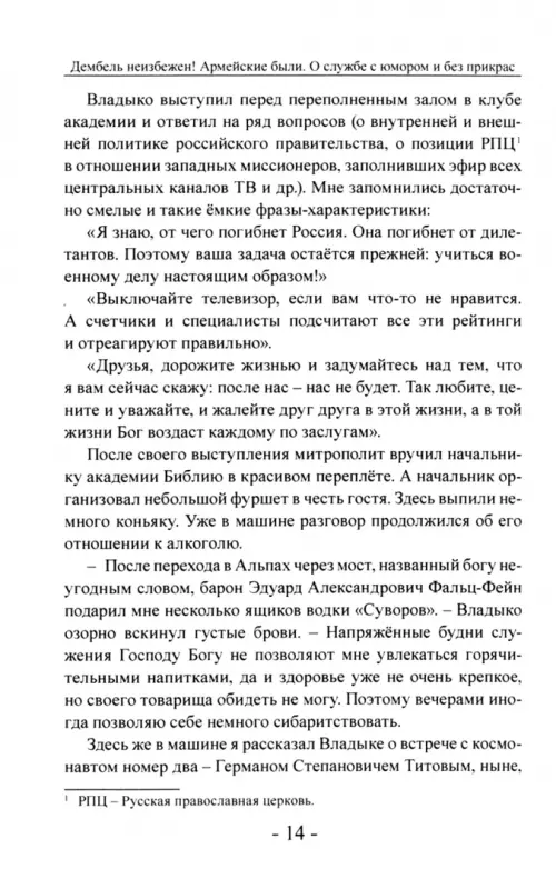 Если вы обнаружили ошибку в описании товара «Дембель неизбежен! Армейские были» (авторы: Васюков Петр Павлович), то выделите её мышкой и нажмите Ctrl+Enter. Спасибо, что помогаете нам стать лучше!