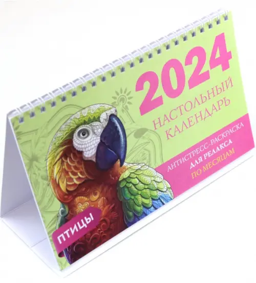 Птицы. Настольный календарь антистресс-раскраска для релакса на 2024 год, по месяцам