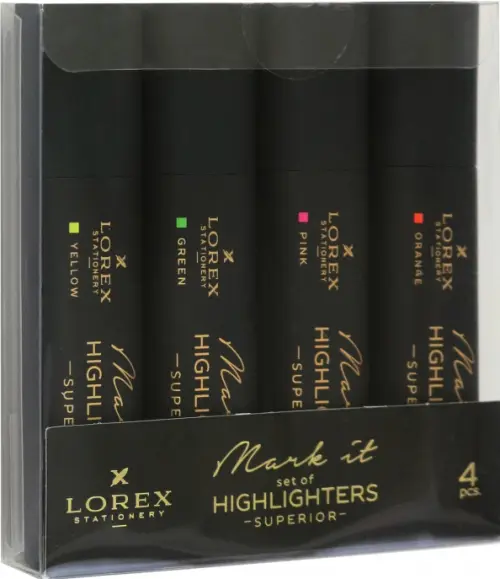 Текстмаркеры LOREX Mark it серии NEON – это четыре ярких неоновых цвета в стильном корпусе, выполненного по технологии Ultra soft touch в абсолютно черном оформлении с фольгой цвета золота. Подходят для выделения в тексте, ежедневнике, тетради. Сделают акценты на самые важные моменты. Заглушка колпачка каждого маркера соответствует цвету чернил. Прочный наконечник не западает в корпус и сохраняет форму на протяжении всего срока службы маркера. Скошенный пишущий узел позволяет наносить линии толщиной от 1 до 5 мм.