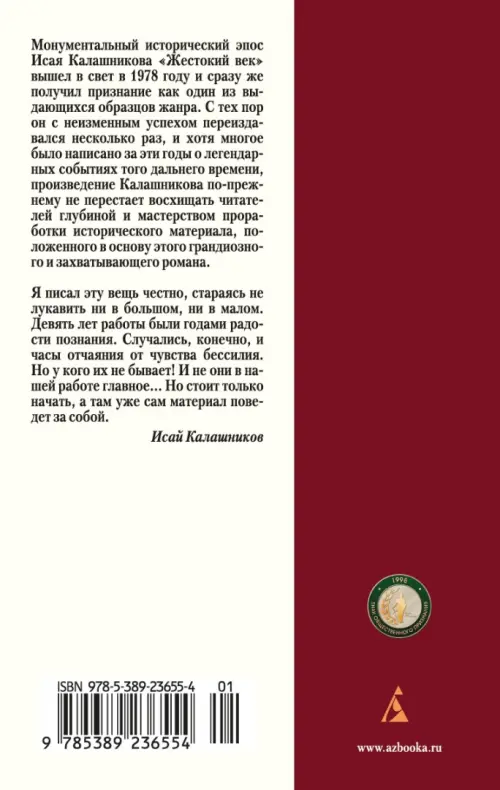 Если вы обнаружили ошибку в описании товара «Жестокий век» (авторы: Калашников Исай Калистратович), то выделите её мышкой и нажмите Ctrl+Enter. Спасибо, что помогаете нам стать лучше!