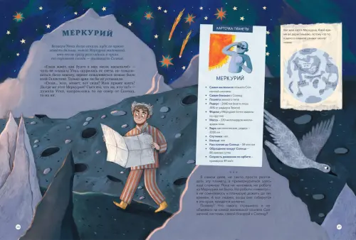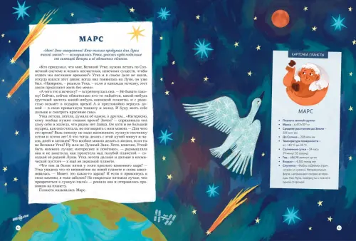 Отличительная особенность от других книг про космос – увлекательный художественный сюжет и большая тайна главного героя, которая раскрывается в самом конце книги. Однако при этом для получения научных сведений книгу можно начинать читать с любого места как атлас, достаточно раскрыть ее на развороте, посвященном нужной планете.