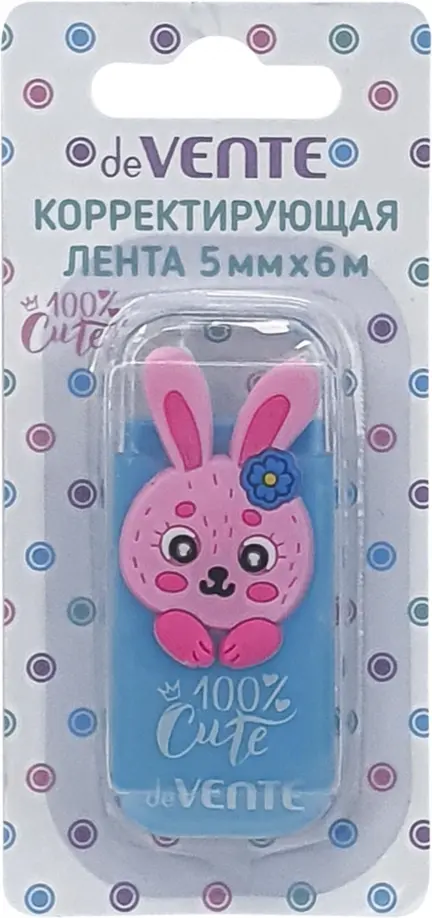 Корректирующая лента "deVENTE. 100% Cute. Rabbit" 5 ммx06 м, голубой непрозрачный корпус, фронтальный аппликатор, в картонном блистере
