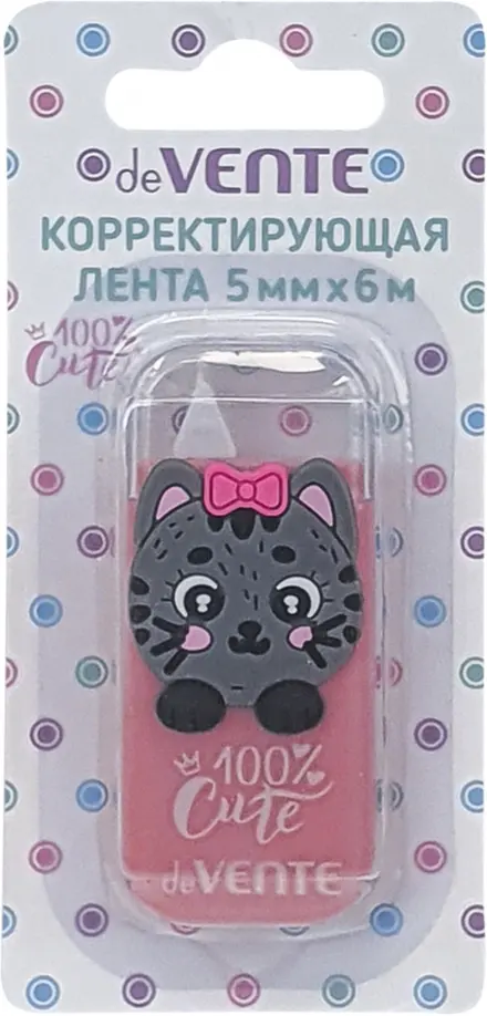 Корректирующая лента "deVENTE. 100% Cute. Cat" 5 ммx06 м, розовый непрозрачный корпус, фронтальный аппликатор, в картонном блистере