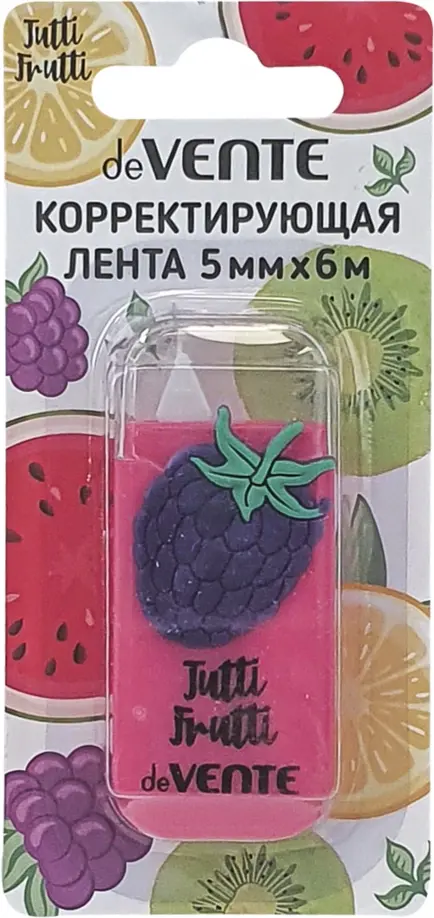 Корректирующая лента "deVENTE. Tutti-Frutti. Blackberry" 5 ммx06 м, неоновый розовый непрозрачный корпус, фронтальный аппликатор, в картонном блистере