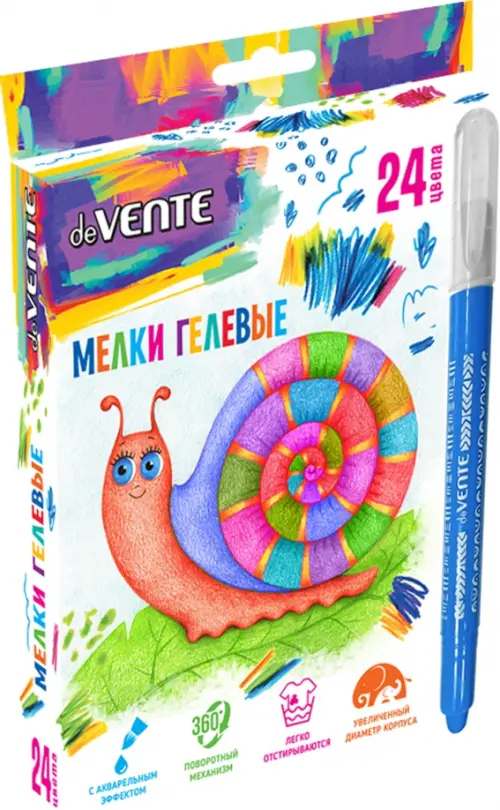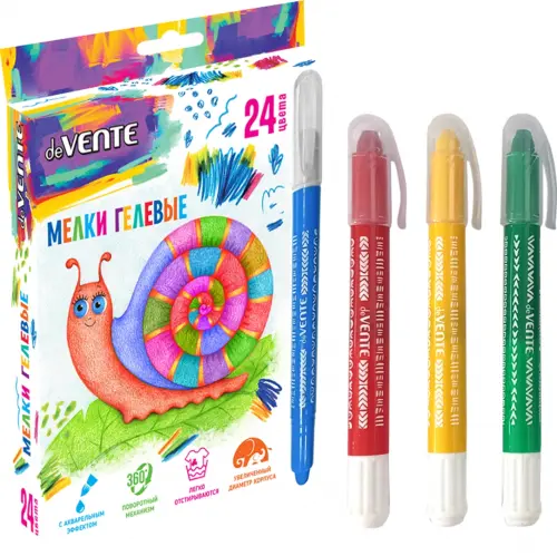 Мелки гелевые "deVENTE" 24 цвета, ультрамягкие, с акварельным эффектом, в пластиковом круглом корпусе с поворотным механизмом, в картонной коробке
