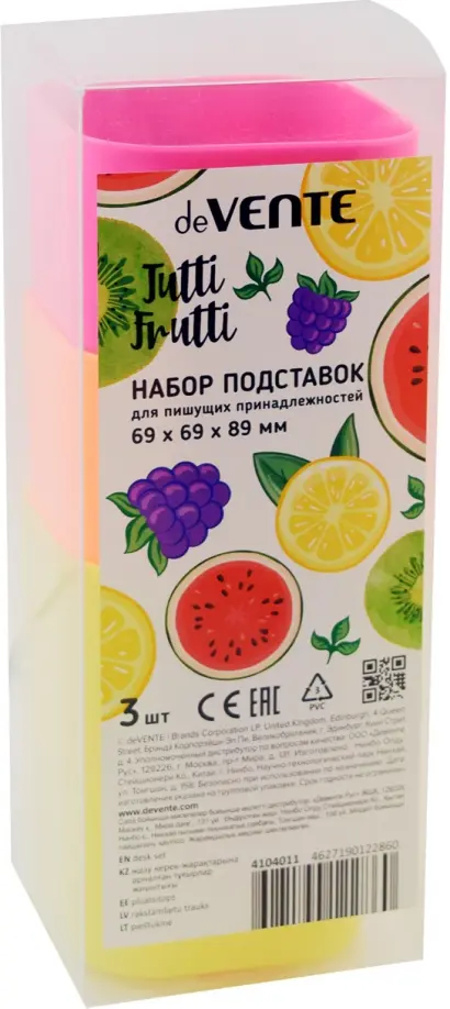 Набор подставок для пишущих принадлежностей "deVENTE. Tutti-Frutti" 3 пластиковых подставки 6,9x6,9x8,9 см c цветным рисунком, в пластиковой подарочной коробке