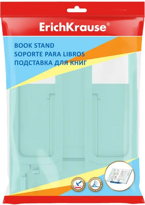 Пластиковая складная подставка с фиксатором для книг. Позволяет расположить книгу под удобным углом наклона (7 углов), тем самым положительно влияя на осанку и зрение ребенка. Держатель, расположенный в нижней части, надежно фиксирует страницы. Ширина подставки — 235мм, высота спинки — 190мм.