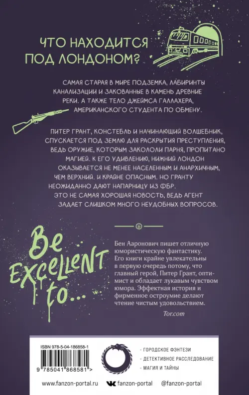 «Бен Ааронович пишет отличную юмористическую фантастику. Эти книги крайне увлекательны, в первую очередь потому, что главный герой, Питер Грант, обладает оптимизмом и лукавым чувством юмора. Эффектная история и фирменное остроумие делает чтение чистым удовольствием». — Tor.com