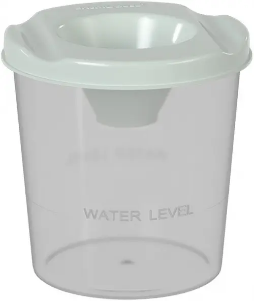 Стакан-непроливайка объемом 200 мл, указатель уровня жидкости 64 мл до уровня, при котором вода не вытекает из баночки если она опрокинется. Размеры стакана: высота 80 мм, диаметр крышки 73 мм.