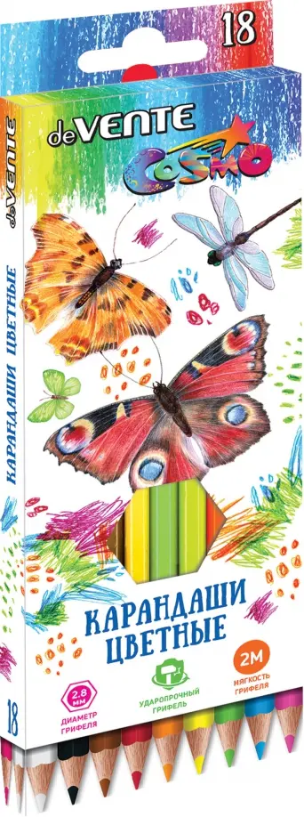 Карандаши цветные "deVENTE. Cosmo" 18 цветов, 2М, диаметр грифеля 2,8 мм, шестигранные, в картонной коробке