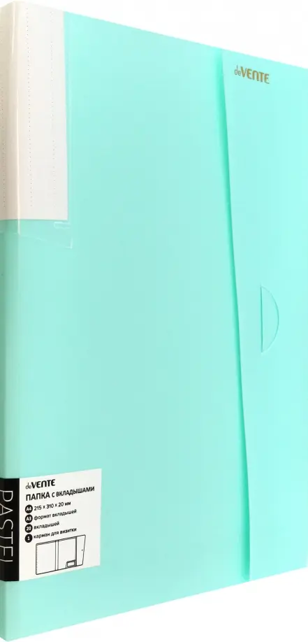 Папка с 020 вкладышами A3 "deVENTE. Pastel" A4 (225x310x20 мм) 500 мкм, фактура "песок" с клапаном, вкладыши 30 мкм, внутренний карман для визитки, индивидуальная маркировка, непрозрачная бирюзовая