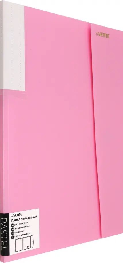Папка с 020 вкладышами A3 "deVENTE. Pastel" A4 (225x310x20 мм) 500 мкм, фактура "песок" с клапаном, вкладыши 30 мкм, внутренний карман для визитки, индивидуальная маркировка, непрозрачная розовая
