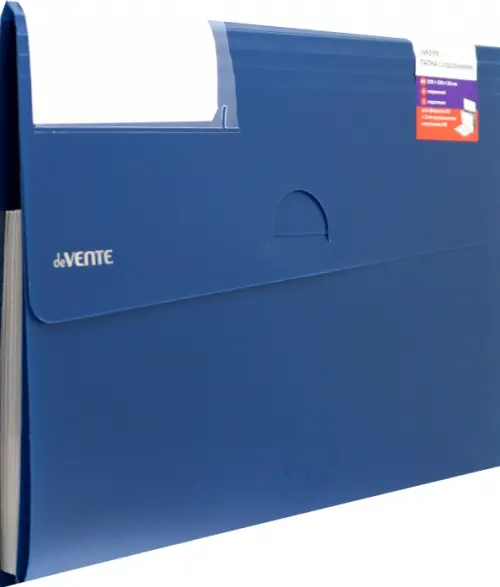 Папка с клапаном с 6-ю отделениями "deVENTE. Герб" A4 (325x230x20 мм) 550 мкм, фактура "песок" выборочный лак, 1 отделение A3 с 2-мя внутренними карманами 160 мкм, индивидуальная маркировка, темно-синяя