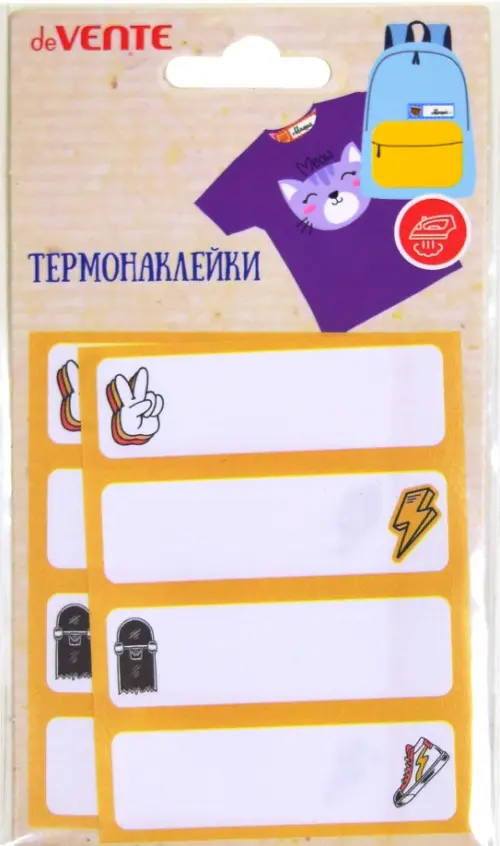 Набор именных термонаклеек на тканевой основе "deVENTE. Skate" 60x20 мм, 8 шт, 4 дизайна, в пластиковом пакете с блистерным подвесом