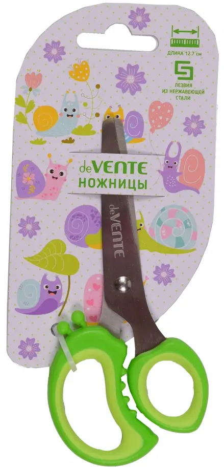 Ножницы детские "deVENTE. Snail" 12,7 см, двухцветные прорезиненные кольца, в картонном блистере, салатовый