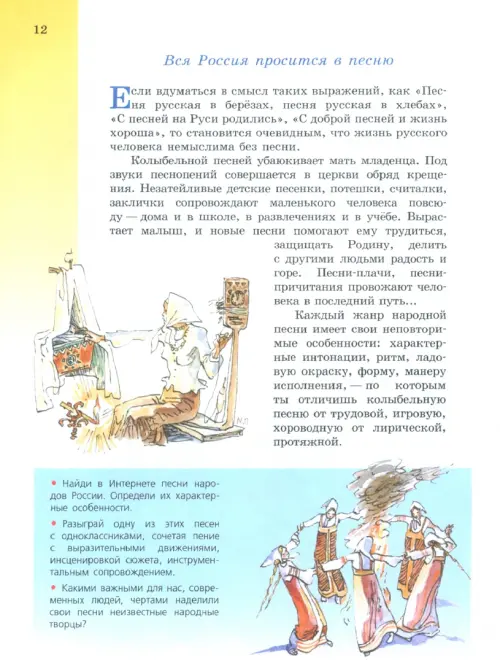 Учебник на основе музыкального, литературного и изобразительного материала раскрывает темы "Музыка и литература" и "Музыка и изобразительное искусство".