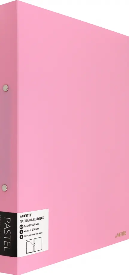 Папка на кольцах "deVENTE. Pastel" A4 (245x315x35 мм) 2 кольца O 30 мм, 650 мкм, фактура "песок" на 250 листов бумаги или 50 вкладышей, внутренний карман 160 мкм, индивидуальная маркировка, непрозрачная розовая